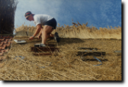 Et puis, il y a un peu plus de trois ans, après un licenciement, il a décidé de poursuivre sa carrière en se mettant à son compte. Fort de sa longue expérience, « Il faut dix ans pour former un bon chaumier », il est aujourd’hui l’un des rares à perpétuer la tradition du toit de chaume dans la région (principalement sur la Côte d’Opale et son arrière-pays), et beaucoup plus loin puisque certains chantiers l’amènent à se déplacer en Normandie où se concentre la majeure partie des chaumières, autour de Paris, en Belgique, dans le sud de la France quelquefois…